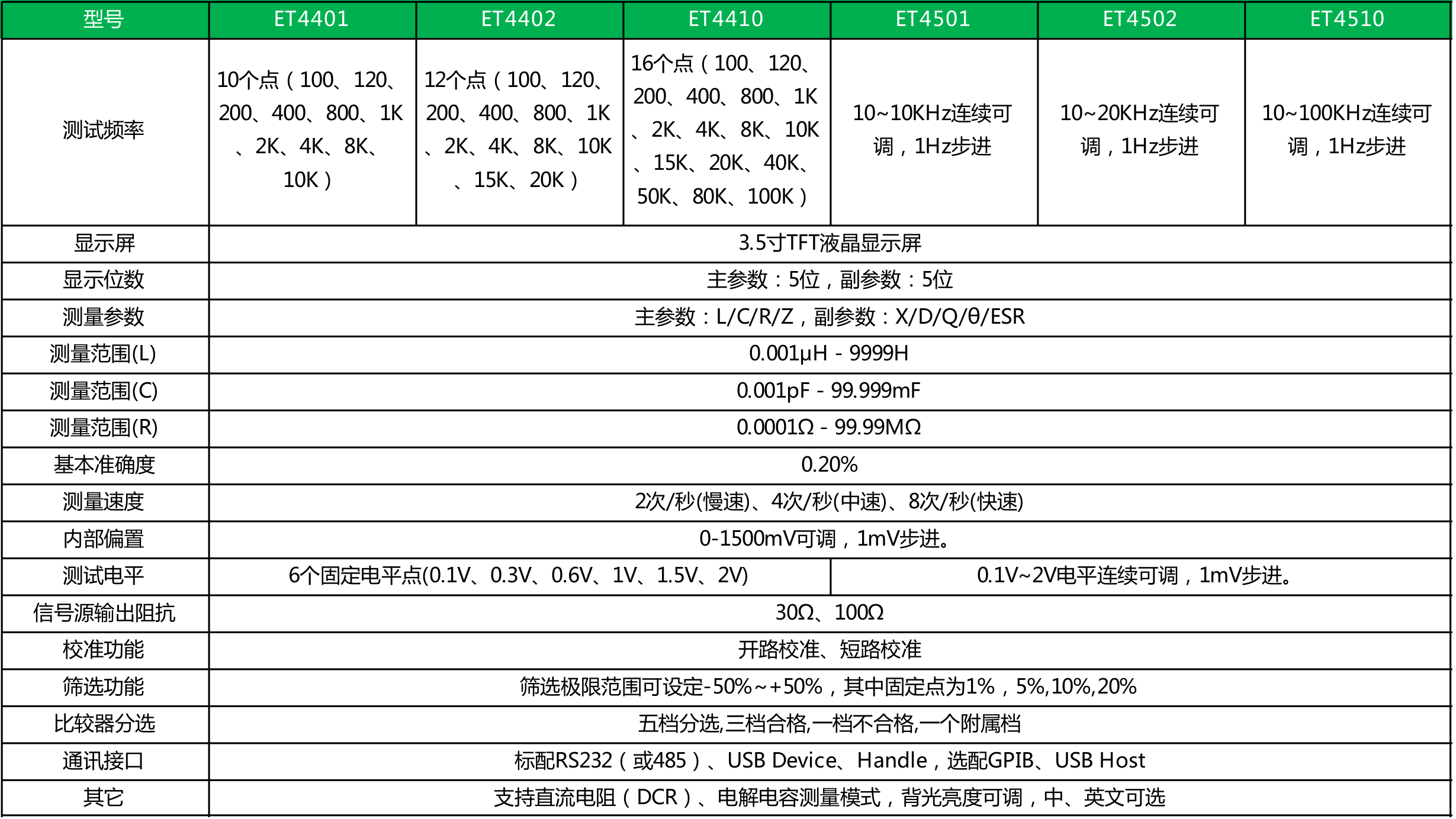● 测量频率最高100kHz,1Hz步进连续可调